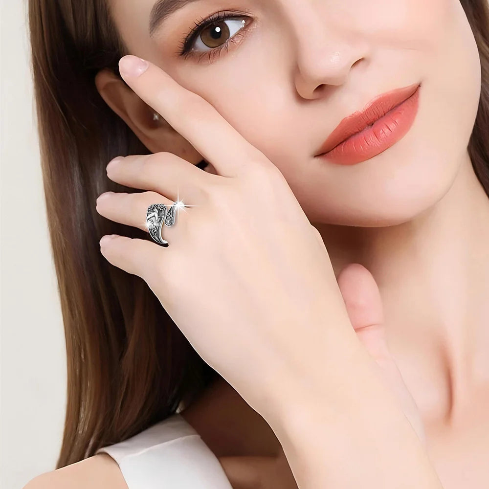 Silver Opening Ring Exquisite Flower Bird Pattern Finger Accessory Female Fancy Anniversary Jewelry.