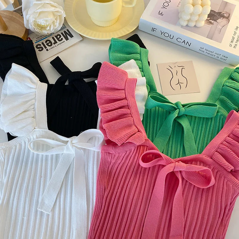 ELASTIC WAIST RUFFLE KNITED TANK TOP