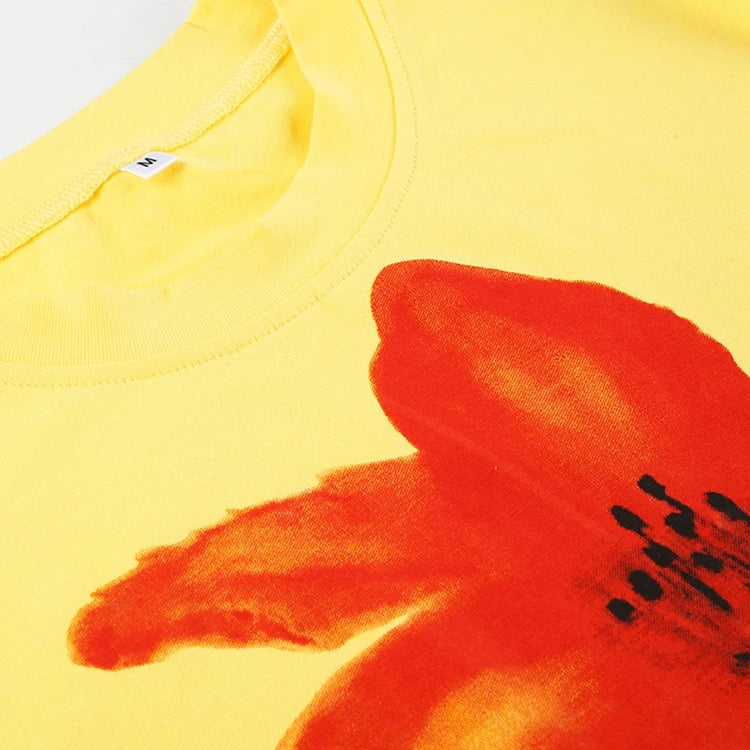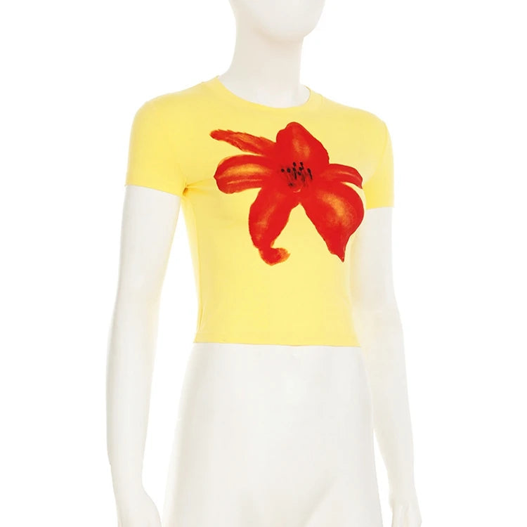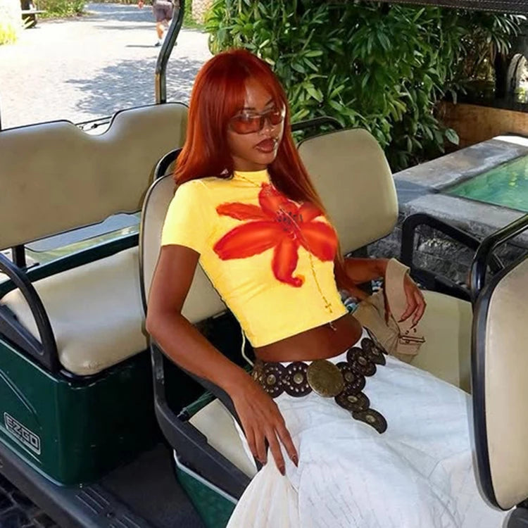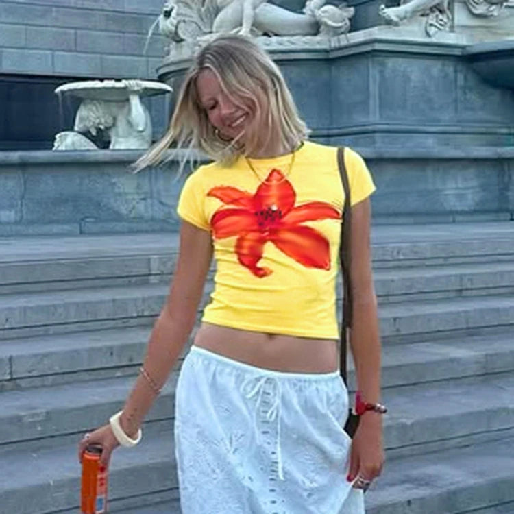 STYLISH LADY Contrast Color Floral Printed Crop Tops 2025 Summer Women Short Sleeve O Neck Casual Holiday Street T Shirts Tees